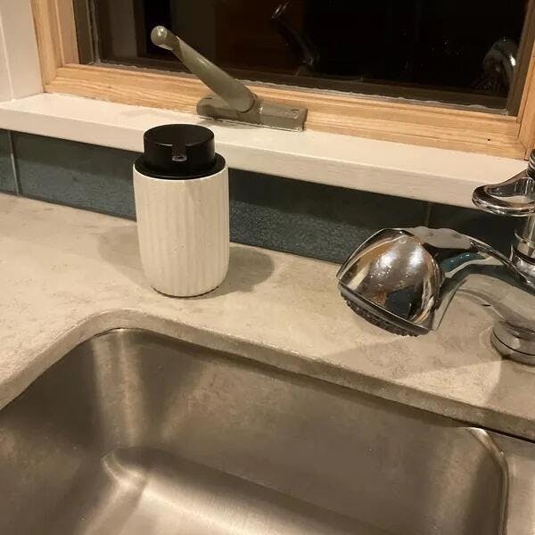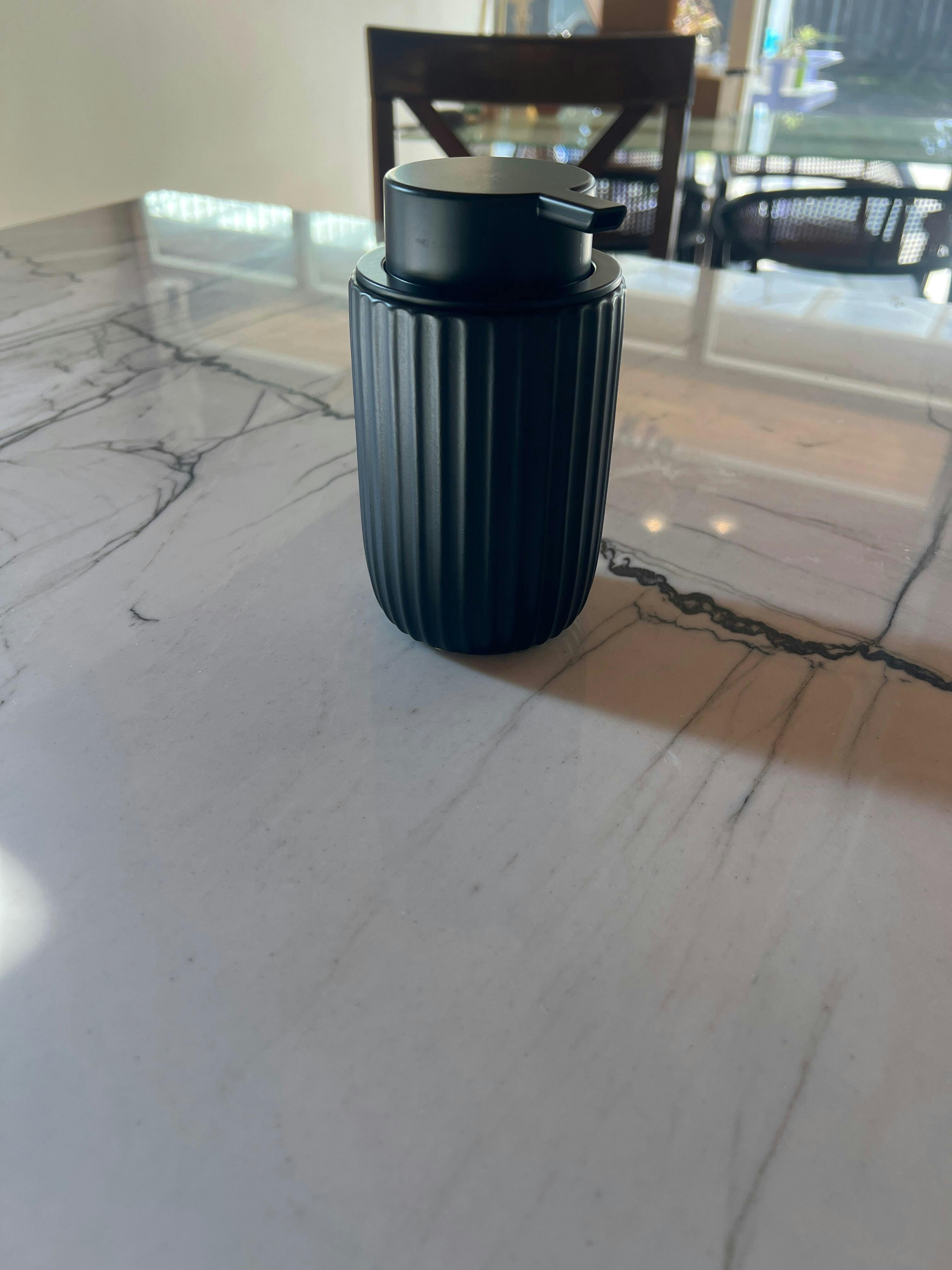 Introducing the GLITTERTIND Ceramic Grooved Dispenser - Crafted from thick, lead-free ceramic, this disperser feels solid in hand and stays put on your counter -- no tipping, no discoloration. Neutral colors that match all bathrooms. Upgrade your daily routine with ease and peace of mind.
